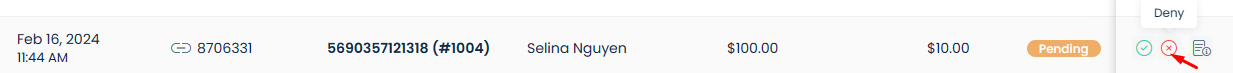 Consequently, there will be cases in which affiliates use a different email address to make self-referral orders. UpPromote's system will not be able to detect such cases. If you notice one, you can manually deny that referral order by going to **Referrals** > Locate it > **Deny** (or **Undo > Deny** in case the referral has been approved already).