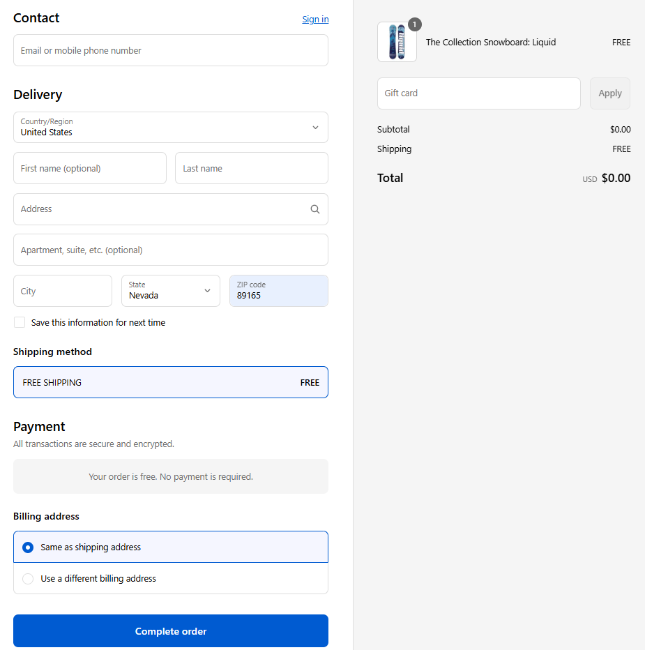 Once the items are selected successfully, the system will automatically calculate the costs that the affiliate needs to pay to claim the gift. You can view the details in the **Order summary** section.