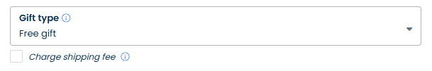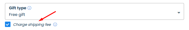 For both **Gift type** options, you can choose to **charge** affiliates **shipping fees**, which means that even if they get the gifts free, they will still have to pay for shipping to get the products delivered to them. The applied shipping rate will depend on your Shopify store's settings.