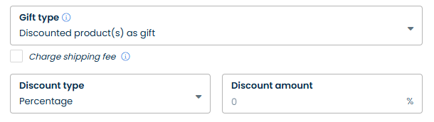 * The **Discounted product(s) as gift** sends discounts (the amount will be set from your end) for the selected products.