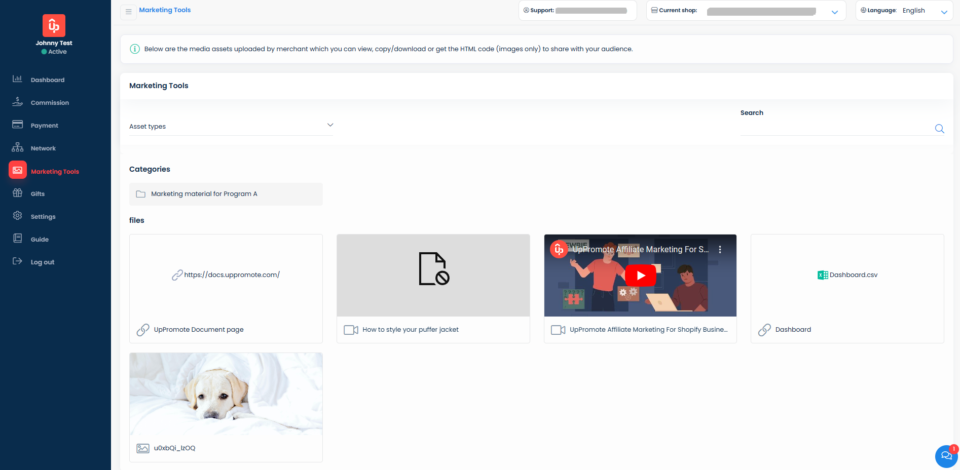 Your media assets are shown on the affiliate account on the **Marketing Tools** tab: