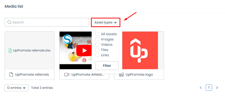 ### 3. Filter media on Asset types