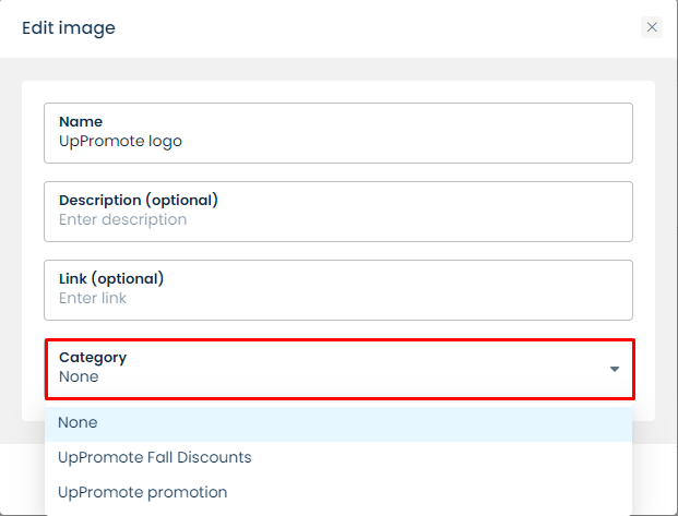 * The **Link** field is **optional.** It will direct customers to your promotional campaign or special collection. For example, if you have a banner of a collection that you want to boost, enter that collection link so affiliates will get redirected to your collection.