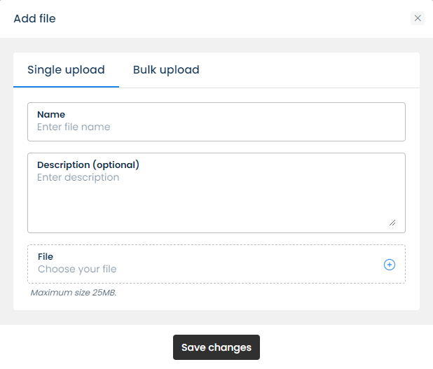 Be noted that the file size must be **smaller than 5MB**. However, on the Enterprise plan, you can upload files with a maximum size of 25MB/file.