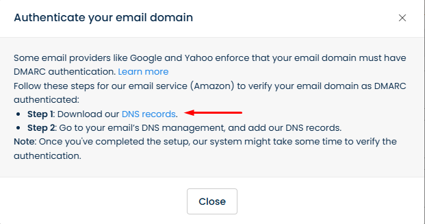 To use your branded domain safely and meet email provider requirements, you’ll need to **add our DNS records to your DNS management**.&#x20;