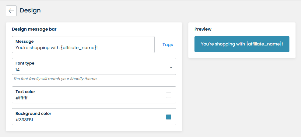 * The Font family of Message bar will be following your Shopify theme's font.