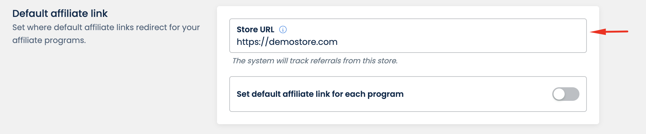 Please note that the domain of the affiliate link destination must be the same as your **Store URL**. Our system cannot track conversions on pages that are not on your store.&#x20;