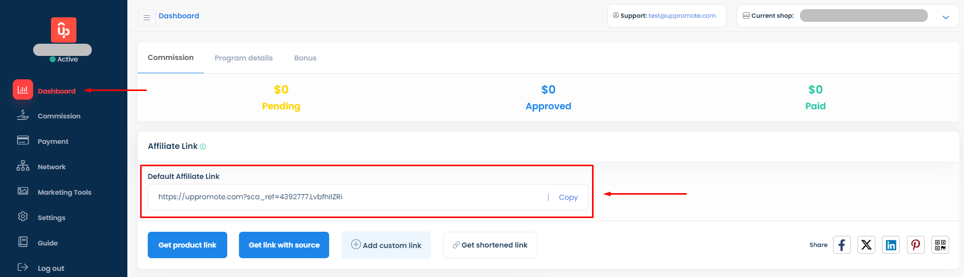 The affiliate link is your store URL with our tracking parameters. Our system will track every referral order made via the affiliate link.