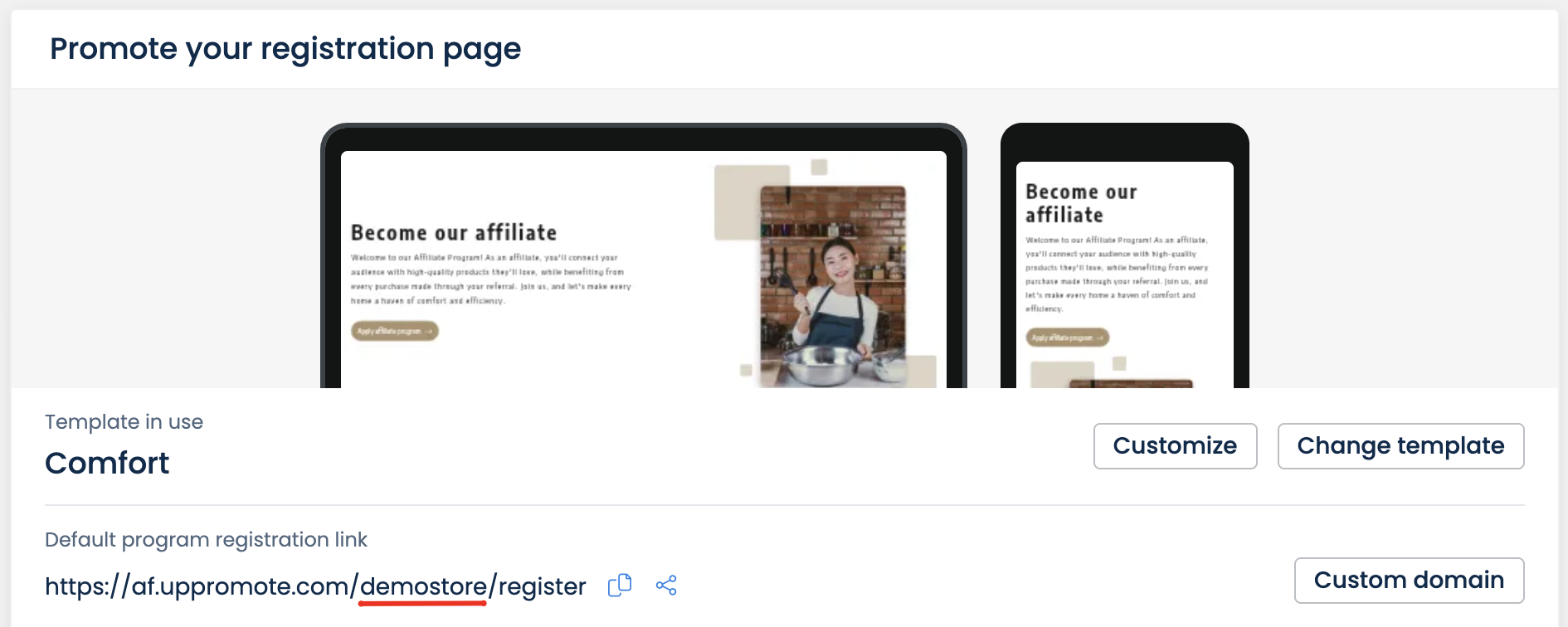 The subpath will be displayed in the **affiliate** **registration** and **login URL**. This makes those links look more professional and authentic to affiliates.